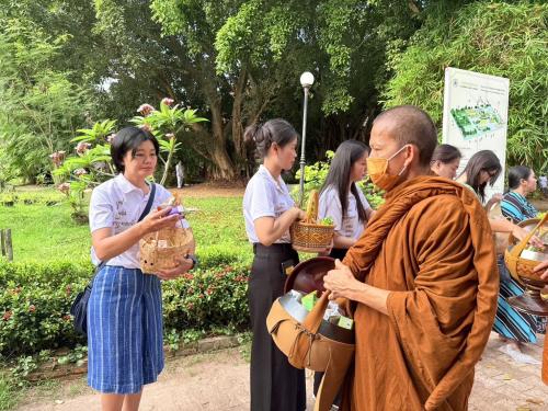 ทั้งนี้ ได้รับความเมตตาจากพระวชิรปีติคุณ (จรัส จันทวังโส) เจ้าคณะอำเภอเมืองสกลนคร (ธรรมยุต) เจ้าอาวาสวัดป่าจันทรังษี จังหวัดสกลนคร พระครูกิตติธรรมนิวิฐ รองเจ้าคณะจังหวัดสกลนคร และพระครูธรรมญาณทิพยรัชต์ รองเจ้าคณะจังหวัดสกลนคร (ธรรมยุต) เจ้าอาวาสวัดป่าโนนขุมเงิน พร้อมด้วยพระสงฆ์สมณศักดิ์ พระภิกษุ และสามเณร ร่วมประกอบพิธีสวดพระพุทธมนต์ และออกรับบิณฑบาต
