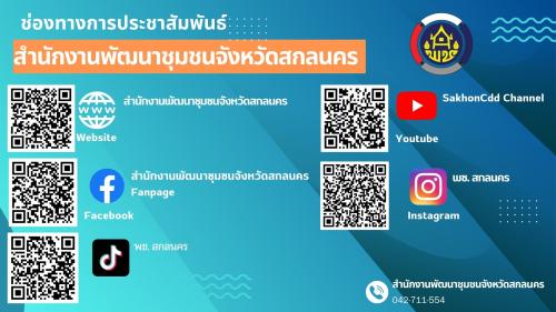 พช. สกลนคร ชวนติดตามข่าวสารและกิจกรรมต่าง ๆ ของหน่วยงาน ผ่านช่องทางออนไลน์อย่างเป็นทางการ ได้แก่ เว็บไซต์ (WWW) Facebook TikTok YouTube และ Instagram เพื่อไม่พลาดทุกความเคลื่อนไหวด้านการพัฒนาชุมชนอย่างต่อเนื่อง
