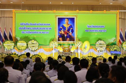 (25 เมษายน 2569) จังหวัดสกลนคร จัดพิธีวางพวงมาลาเนื่องในวันที่ระลึกคล้ายวันสวรรคตสมเด็จพระนเรศวรมหาราช ประจำปี 2569 ณ หอประชุมจามจุรี มหาวิทยาลัยราชภัฏสกลนคร โดยนางรณิดา เหลืองฐิติสกุล ผู้ว่าราชการจังหวัดสกลนคร เป็นประธานในพิธี นำหัวหน้าส่วนราชการ ศาล ทหาร ตำรวจ อัยการ รองผู้ว่าราชการจังหวัด รองนายกเหล่ากาชาด รองประธานแม่บ้านมหาดไทย ตลอดจนหน่วยงานภาครัฐ ภาคเอกชน และประชาชนทุกภาคส่วน ร่วมวางพวงมาลาเบื้องหน้าพระบรมสาทิสลักษณ์สมเด็จพระนเรศวรมหาราช พร้อมจุดเครื่องทองน้อย และกล่าวถวายราชสดุดี เพื่อแสดงออกถึงความจงรักภักดีและน้อมรำลึกในพระมหากรุณาธิคุณอันหาที่สุดมิได้
