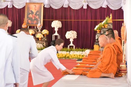 โดยผู้ว่าราชการจังหวัดสกลนครได้ประกอบพิธีจุดธูปเทียนบูชาพระรัตนตรัย จุดเครื่องทองน้อยหน้าพระบรมสาทิสลักษณ์สมเด็จพระนเรศวรมหาราช จากนั้นเจ้าหน้าที่อาราธนาศีล พระเทพวชิรังษี เจ้าคณะจังหวัดสกลนคร (ธรรมยุต) เจ้าอาวาสวัดป่าสุทธาวาส เป็นประธานสงฆ์ให้ศีล พระสงฆ์สวดพระพุทธมนต์ ก่อนประกอบพิธีทอดผ้าไตรและถวายเครื่องไทยธรรม และร่วมกันทำบุญตักบาตรถวายพระราชกุศลโดยพร้อมเพรียง