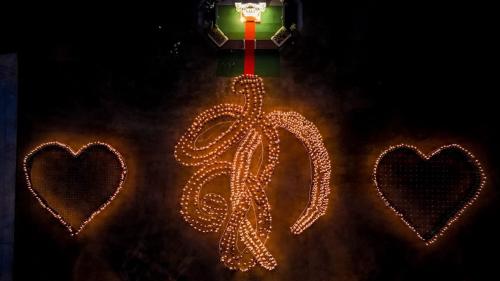 จากนั้นผู้ร่วมพิธี ร่วมแปรอักษร โดยเริ่มจากการแปรอักษรคน ที่จะเห็นเป็น สัญลักษณ์ ส. สีดำ ก. สีขาว และดวงใจ 2 ดวง ขอบสีดำ ต่อด้วยการแปรอักษรเทียน ที่ส่องสว่าง เปรียบเสมือนการรวมดวงใจของชาวจังหวัดสกลนคร ที่พระองค์ทรงเป็นดั่งแสงแห่งความดีงาม ที่ส่องนำใจปวงชนชาวไทยตราบนิรันดร์ และผู้ร่วมพิธีได้ร่วมร้องเพลงความฝันอันสูงสุด และเพลงสรรเสริญพระบารมี ด้วยเสียงอันดังกึกก้อง เพื่อรำลึกถึงพระมหากรุณาธิคุณของพระองค์ ที่มีต่อชาวจังหวัดสกลนคร อย่างหาที่สุดมิได้