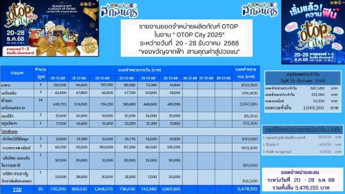 สำหรับผลการจำหน่ายผลิตภัณฑ์ชุมชน (OTOP) วันที่ 25 ธันวาคม 2568