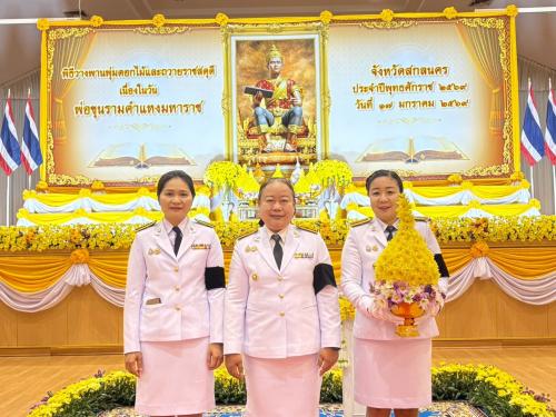 วันที่ 17 มกราคม 2569 ณ หอประชุมจามจุรี มหาวิทยาลัยราชภัฏสกลนคร จังหวัดสกลนคร นางรณิดา เหลืองฐิติสกุล ผู้ว่าราชการจังหวัดสกลนคร เป็นประธานในงานรัฐพิธีเนื่องในวันพ่อขุนรามคำแหงมหาราช วันที่ 17 มกราคม 2569 และวันยุทธหัตถี สมเด็จพระนเรศวรมหาราช วันที่ 18 มกราคม 2569 โดยมีข้าราชการพลเรือน ตุลาการ อัยการ ทหาร ตำรวจ องค์กรปกครองส่วนท้องถิ่น เหล่ากาชาด แม่บ้านมหาดไทย สมาคม ชมรม และภาคส่วนต่าง ๆ เข้าร่วมพิธีอย่างพร้อมเพรียง เพื่อร่วมวางพุ่มดอกไม้ถวายราชสักการะ และน้อมรำลึกในพระมหากรุณาธิคุณอย่างหาที่สุดมิได้