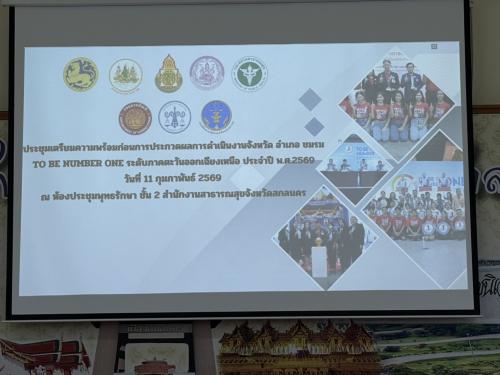 วันที่ 11 กุมภาพันธ์ 2569 เวลา 13.30 – 16.30 น. สำนักงานสาธารณสุขจังหวัดสกลนคร จัดประชุมเตรียมความพร้อมและชี้แจงหลักเกณฑ์การประกวดโครงการ TO BE NUMBER ONE ระดับภาคตะวันออกเฉียงเหนือ ประจำปี 2569 เพื่อสร้างความเข้าใจและเตรียมความพร้อมแก่หน่วยงานที่เกี่ยวข้อง
