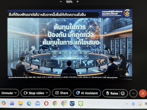 การประชุมดังกล่าวจัดขึ้นภายใต้โครงการเพิ่มประสิทธิภาพการบริหารจัดการความมั่นคงปลอดภัยสารสนเทศตามแนวทางมาตรฐานสากล เพื่อเสริมสร้างความรู้ ความเข้าใจด้านความปลอดภัยทางไซเบอร์ และเตรียมความพร้อมของบุคลากรในการรับมือภัยคุกคามทางดิจิทัลที่มีความซับซ้อนมากขึ้นในปัจจุบัน