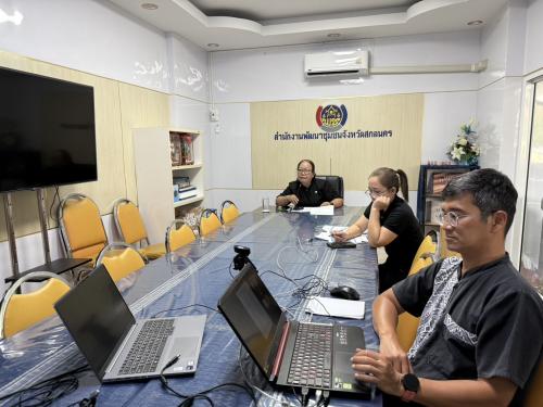 ณ ห้องสำนักงานพัฒนาชุมชนจังหวัดสกลนคร นายองอาจ ซองทุมมินทร์ พัฒนาการจังหวัดสกลนคร มอบหมายให้นางหทัยรัตน์ ฝ่ายหินร่อง ผู้อำนวยการกลุ่มงานสารสนเทศการพัฒนาชุมชน พร้อมทีมนักวิชาการพัฒนาชุมชน เข้าร่วมประชุมติดตามผลการดำเนินงานผ่านระบบออนไลน์